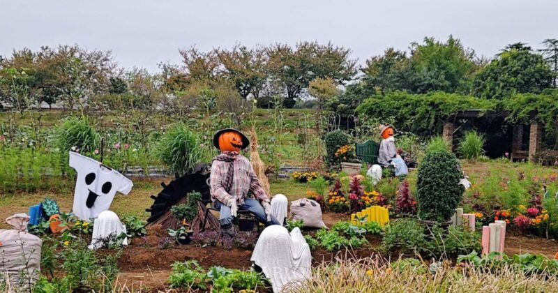 ハロウィーン装飾がかわいい花菜ガーデンの園内