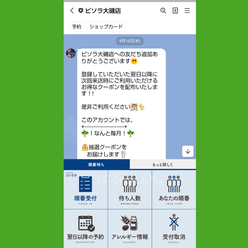 PISOLA(ピソラ)大磯店では、LINEのお友達登録をすると便利に予約ができます。